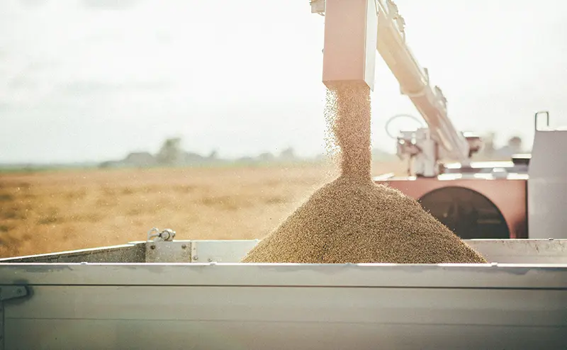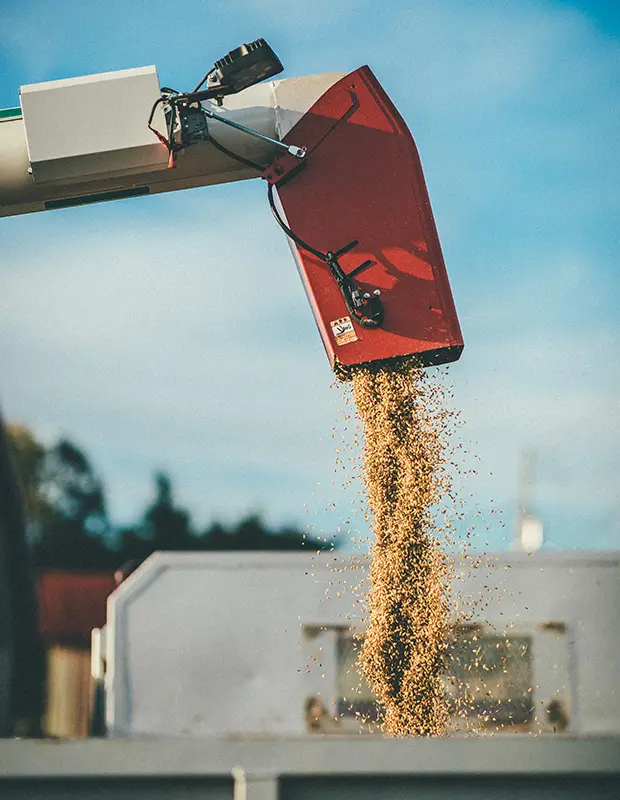 母・美代子さんが運転するダンプに、コンバインから米が流し込まれる。