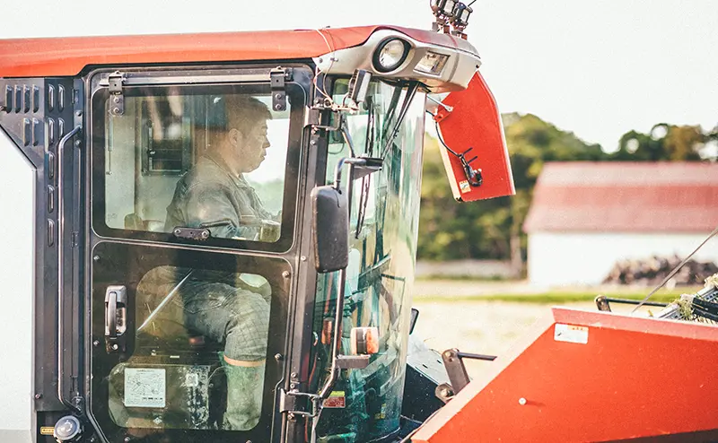 石狩川の右岸に広がる、広大な農業地帯の石狩市北生振地区。力強く稲穂を刈るのは、雄一さんが自ら手入れをしている愛用のコンバインだ。JAさっぽろ米麦振興会を牽引する若きリーダーが目標に掲げる「面白いこと」とは