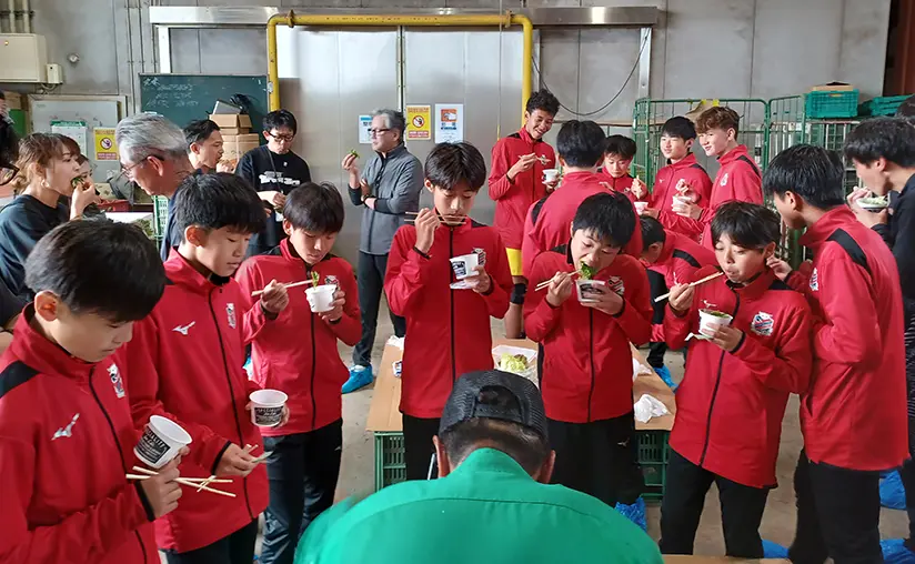選手たちは普段なかなか目にすることのない農業の現場へ足を運び、地元の食材をふんだんに使ったランチを堪能。そうした体験を通して、“食”の大切さや生産者への感謝の気持ちを深く感じ取っていきました。