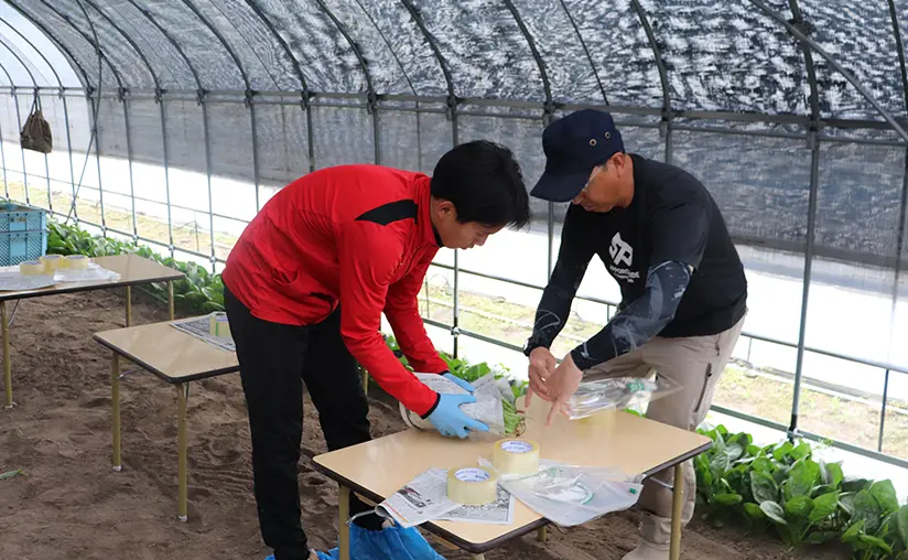 桑島さんご家族が、根っこから丁寧に収穫する方法や、新鮮さを保つ袋詰めのコツを教えてくれました。