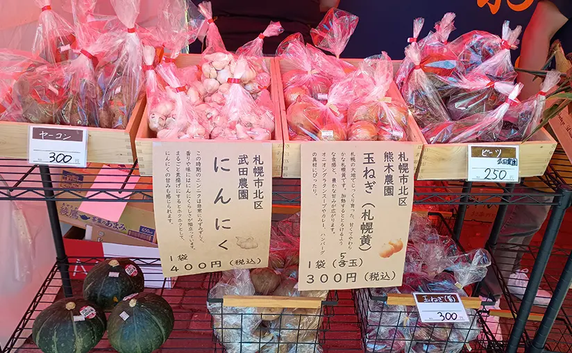 さらに、以前からスープカレーでコラボレーションしている奥芝商店と、今年初めて「生カレーパン」を共同開発し、販売。札幌黄をたっぷり使った生カレーパンは大好評で、多くのお客さまにお買い求めいただきました。また、北海道芸術デザイン専門学校(bisen)の学生がデザインしたオリジナル紙袋も配布し、こちらも大好評。会場を明るく彩り、たくさんの方に喜んでいただきました。