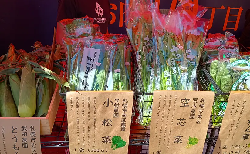 当日は、部員・事務局が交代で店頭に立ち、札幌黄や小松菜、ほうれん草、空心菜、レタスなど、青年部員が心を込めて育てた新鮮な野菜や加工品を販売しました!