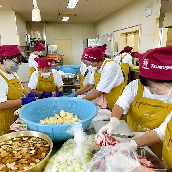 女性部の特製豚汁は、「札幌近郊で美味しい農畜産物が生産されていると知ってほしい」との想いから、札幌黄や札幌白ゴボウなど、札幌産の食材にこだわって調理。