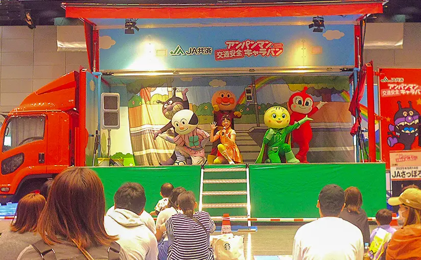 また、当日は「JA共済アンパンマン交通安全キャラバン」が行なわれ、子どもたちや保護者は、アンパンマンとその仲間たちと一緒に、歌や踊りを通じて交通ルールとマナーを学びました。